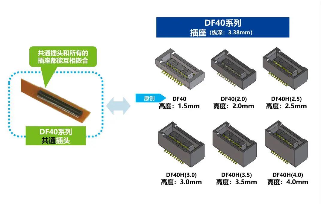 DF40 Series丨0.4mm間距,1.5-4.0mm高,板對FPC連接器