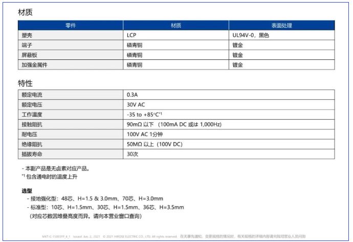 * 1 僅對應H=1.5mm產品的Type-C